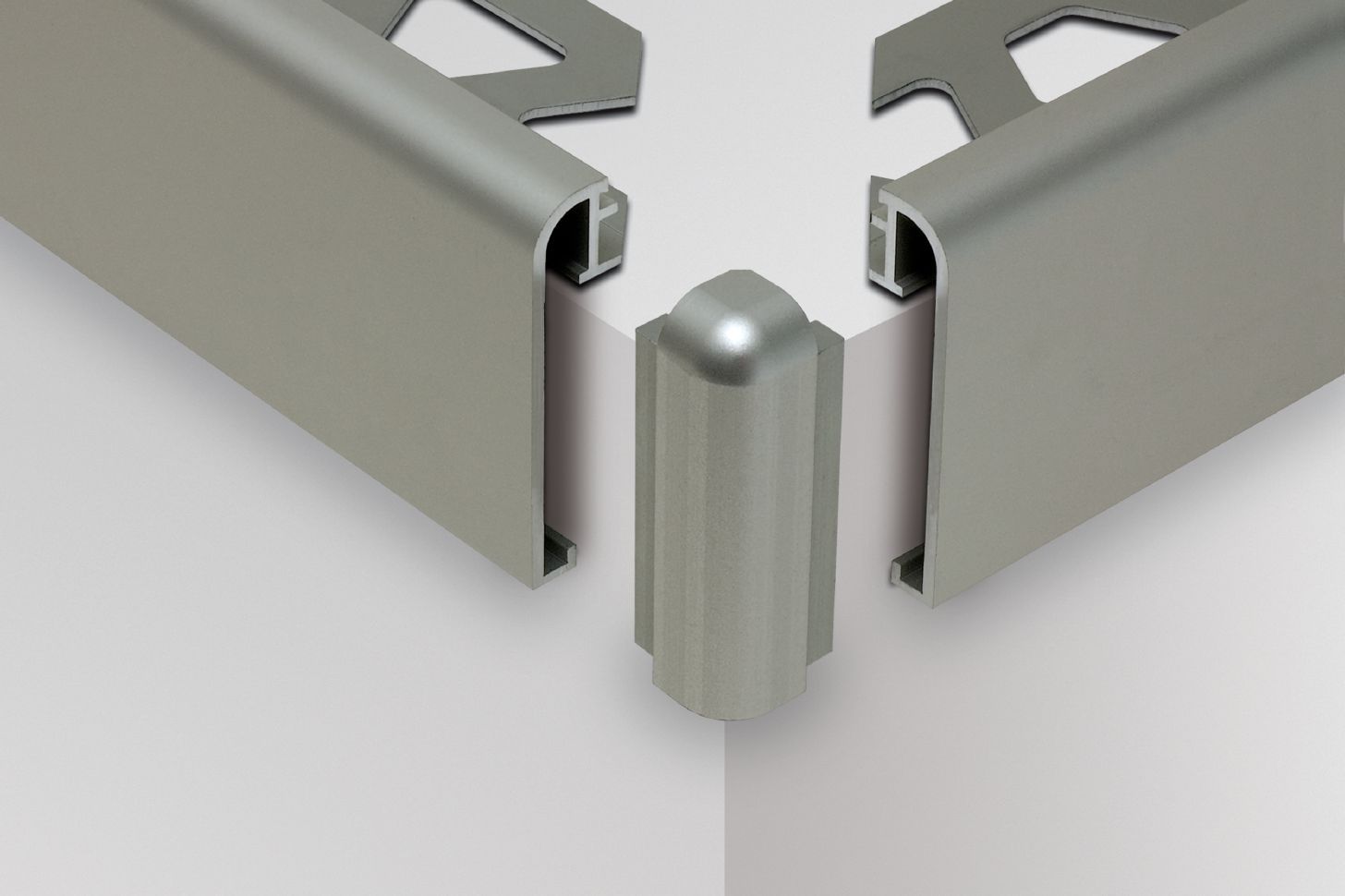 The RONDEC-STEP prefabricated corner pieces eliminate the need to miter profiles for clean, rounded edges in countertop and stair applications. They are available in 90° and 135° angles and insert into the end of the corresponding profile to ensure a perfect alignment.